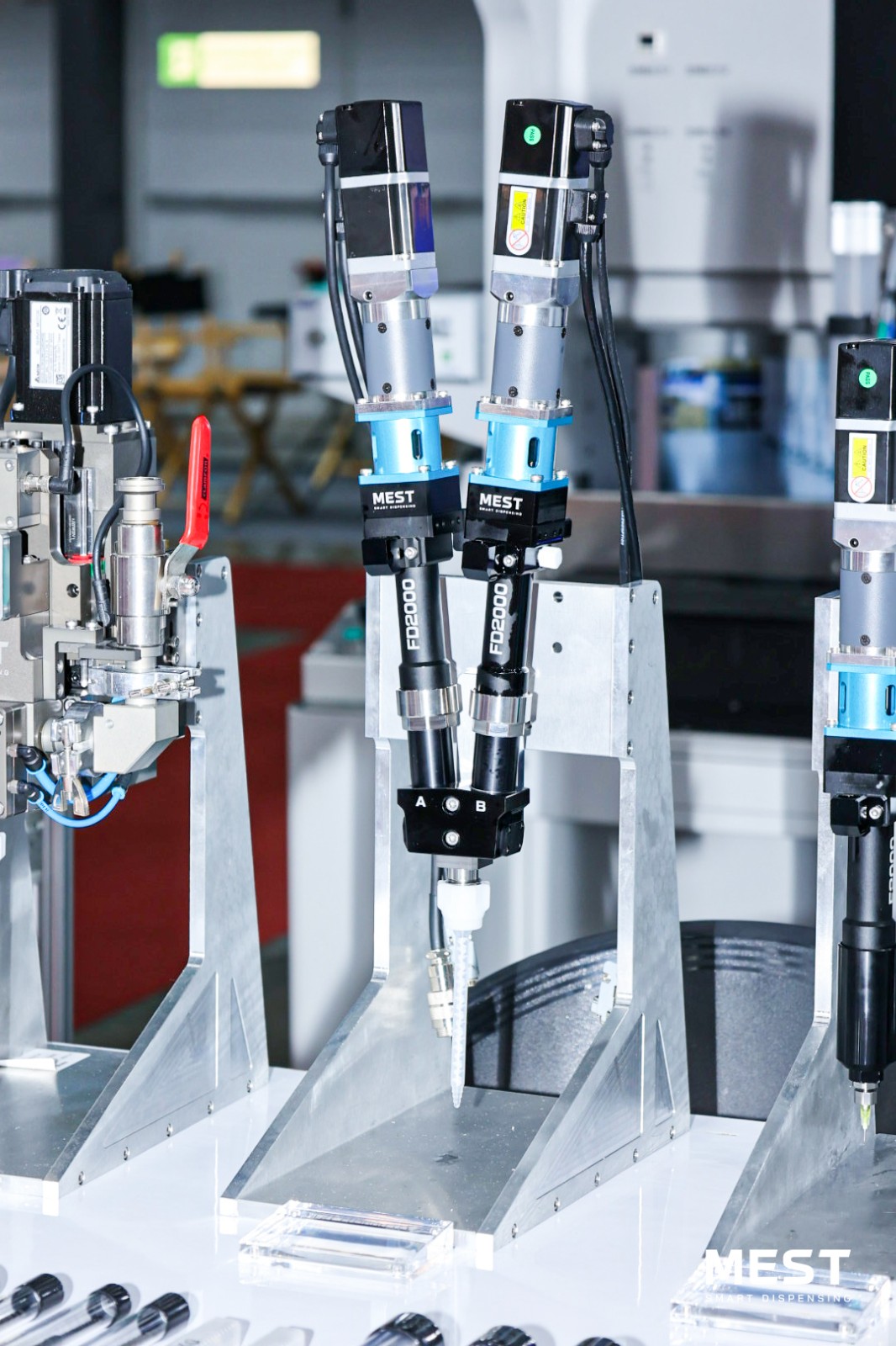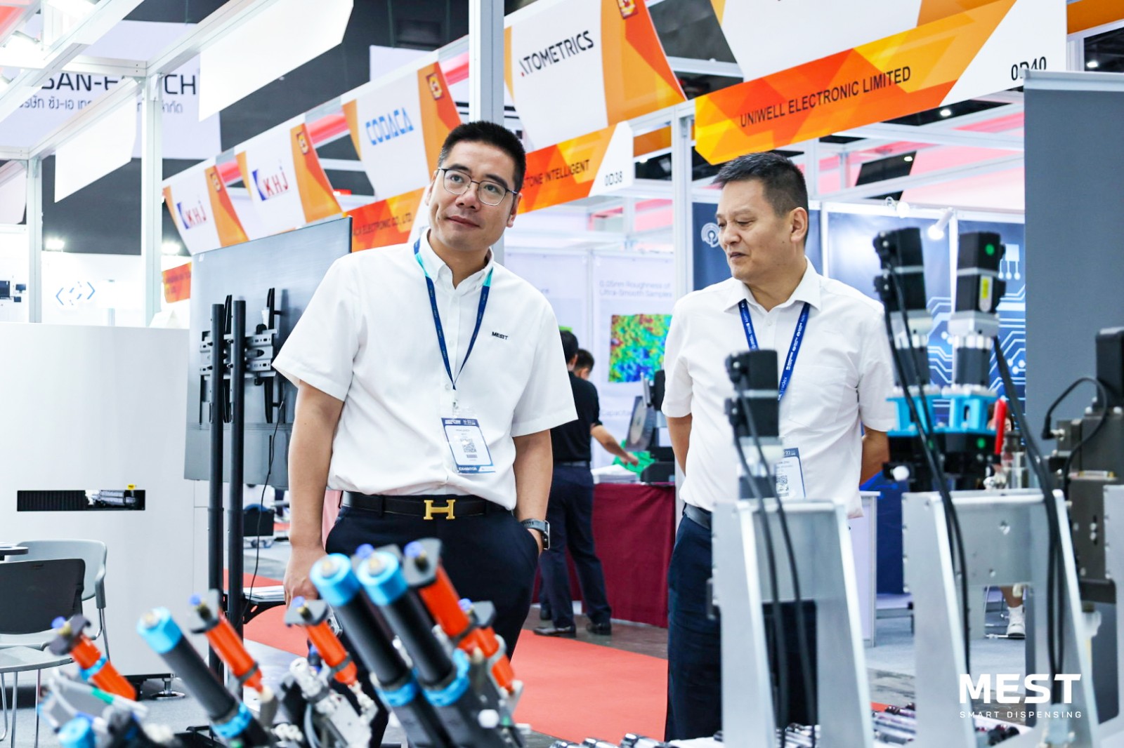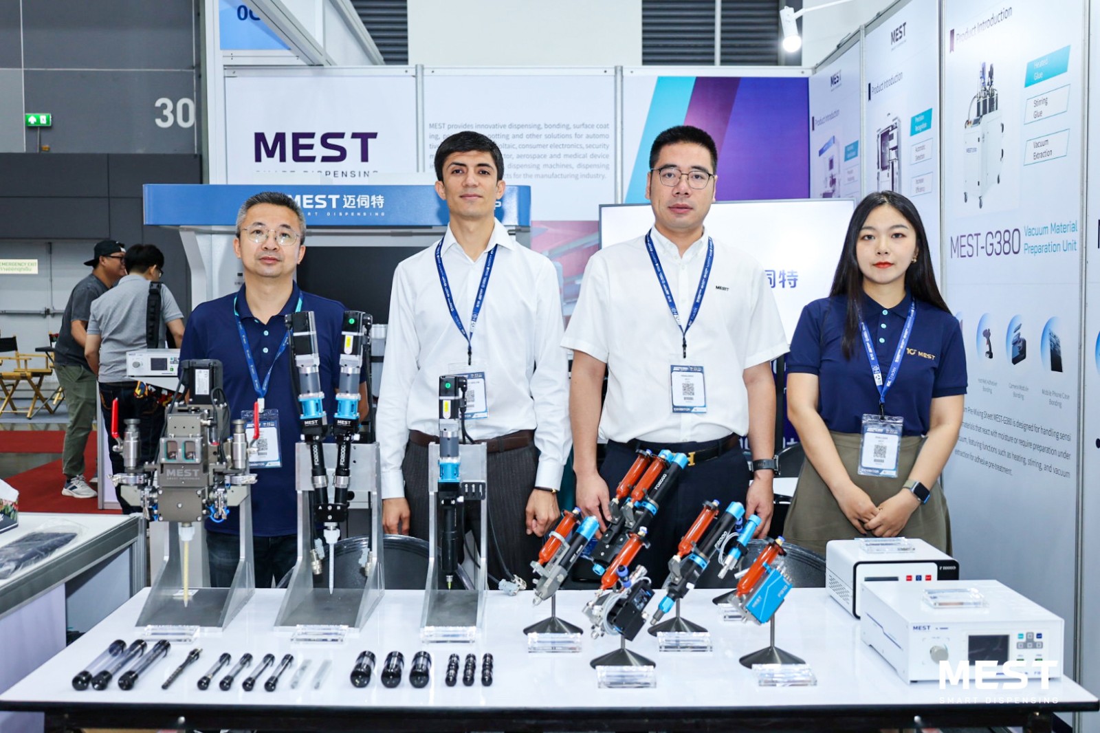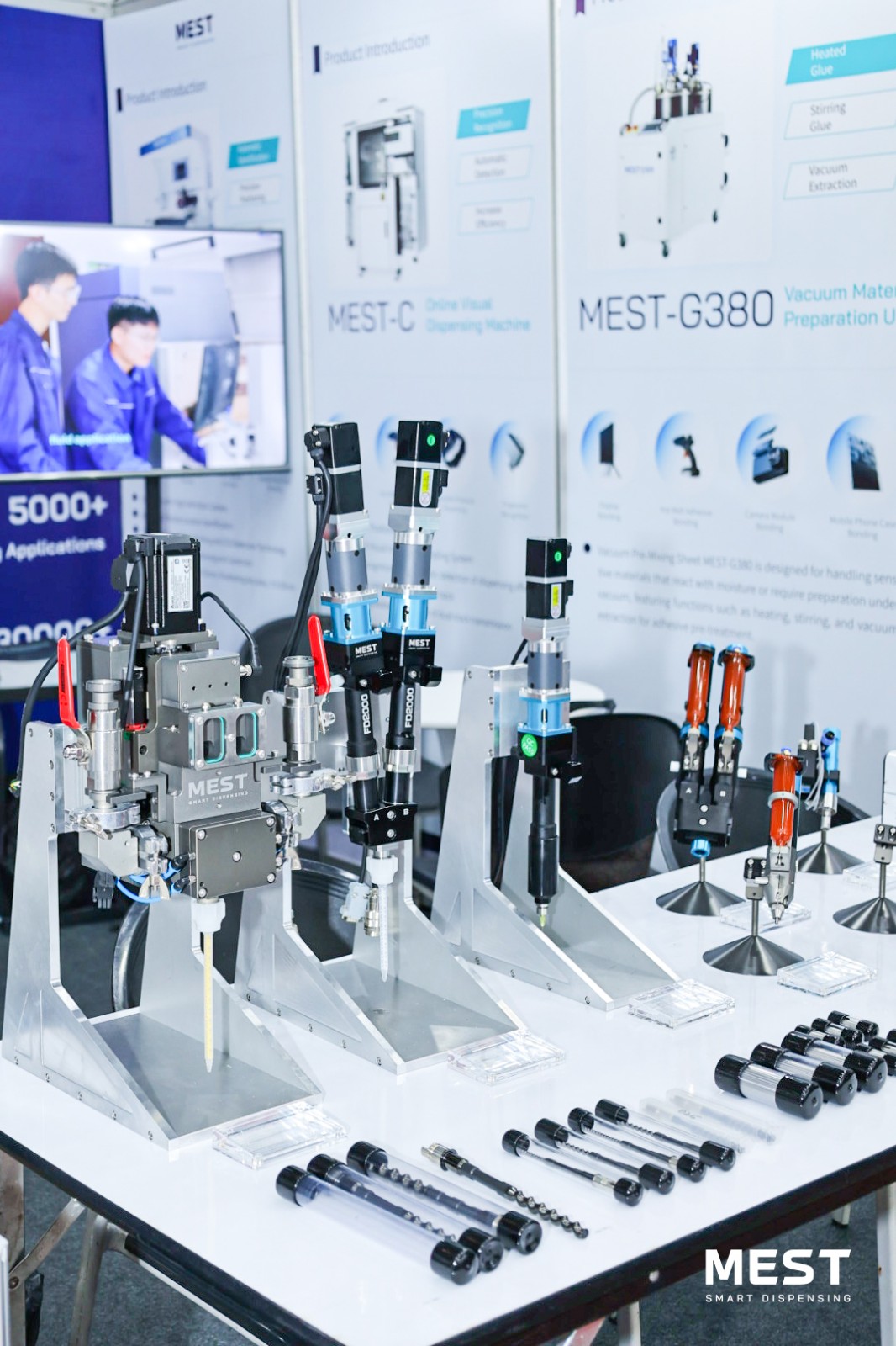 展會現(xiàn)場,邁伺特專業(yè)團隊亮相,直觀展示了MEST點膠技術(shù)的應(yīng)用場景、工作流程及優(yōu)勢特點,針對行業(yè)點膠難點提出